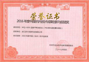 2017年4月,公司“MQL-8201型碳平衡油耗仪(汽车燃料消耗量检测仪)”产品喜获2016年杭州市技术成果创新奖